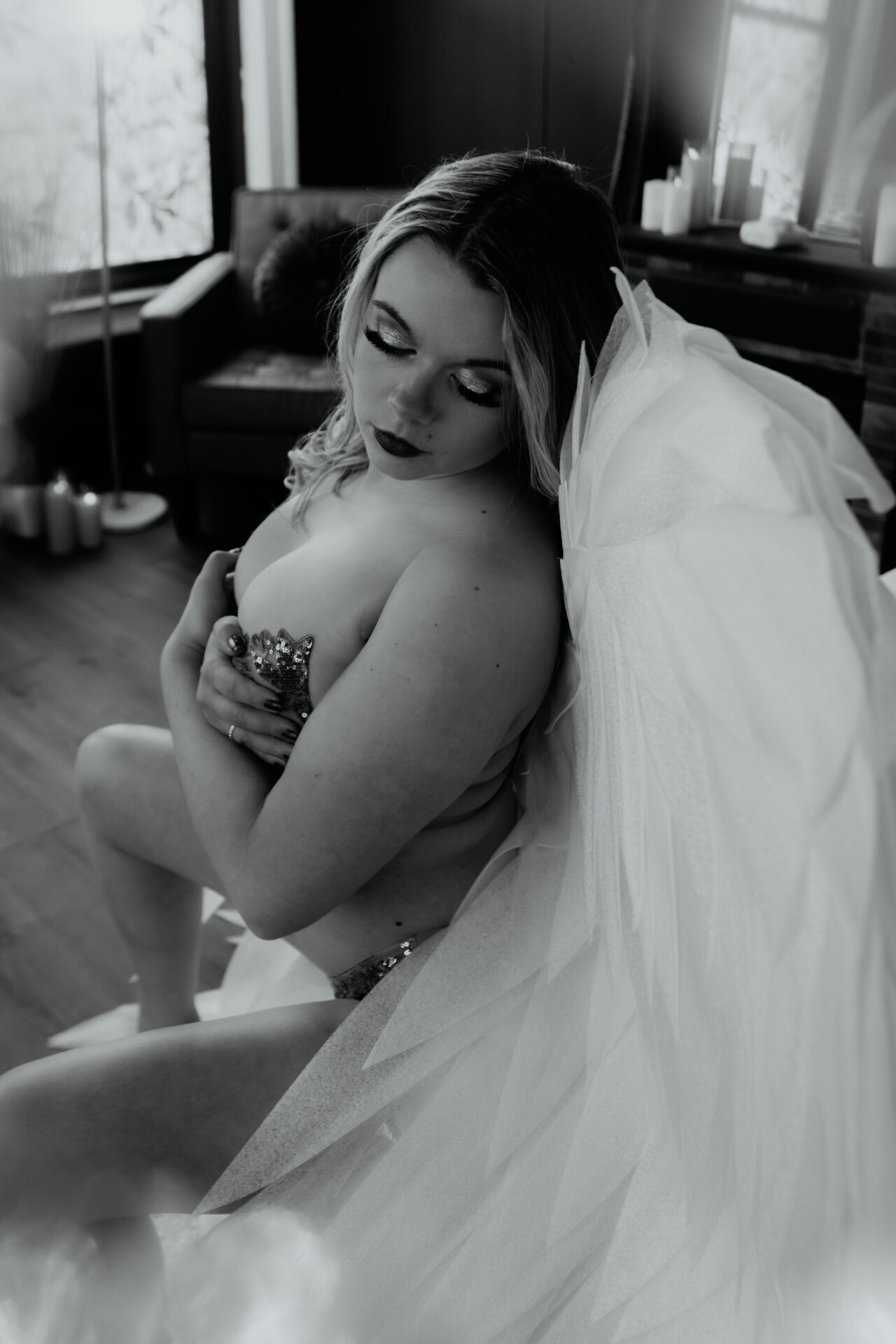 This boudoir gallery captures quiet confidence through soft light, relaxed posing, and intentional stillness. Photographed at Arielle Roth Boudoir in Bay City, Michigan, these images focus on natural curves, emotion, and presence, creating a calm, intimate experience that feels honest and deeply self affirming.