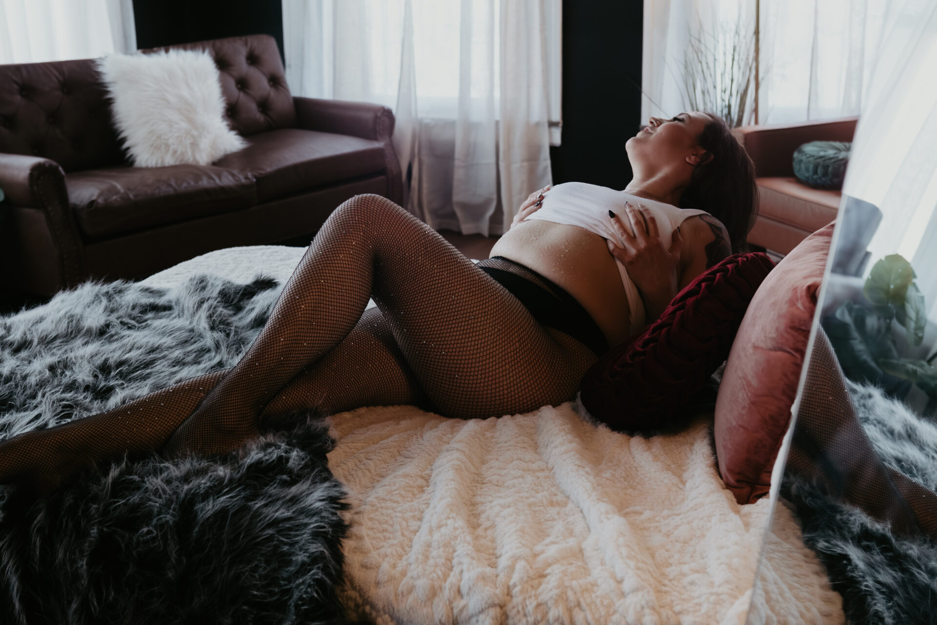 This session leans into texture, contrast, and that in-between space where confidence isn’t posed, it just exists. Shot in my Bay City, Michigan studio with soft natural light and a wet skin setup, every image focuses on real details. Skin, movement, tension, softness. Nothing overdone, nothing hidden. Just a full-body experience that feels grounded, a little raw, and completely yours.