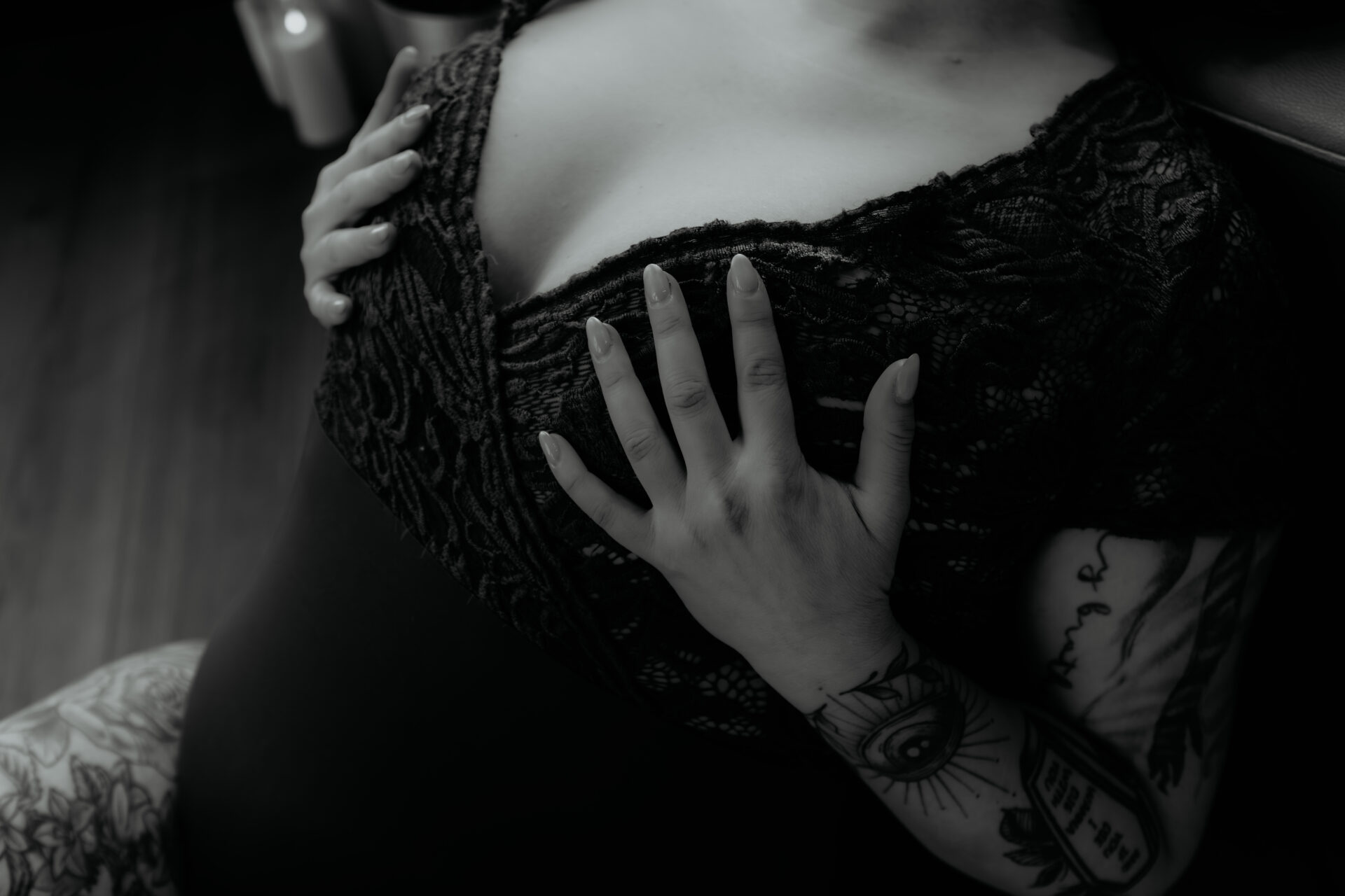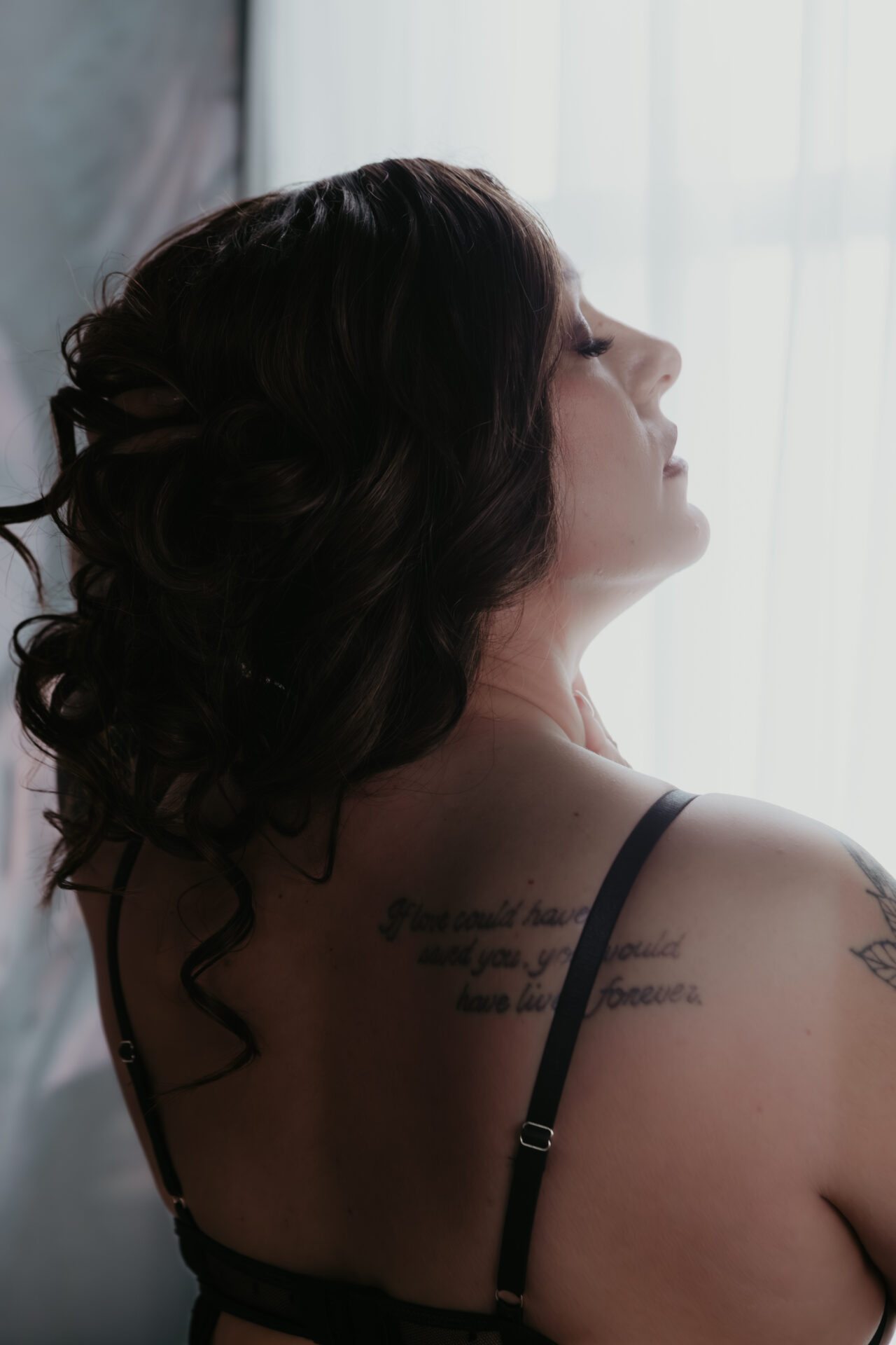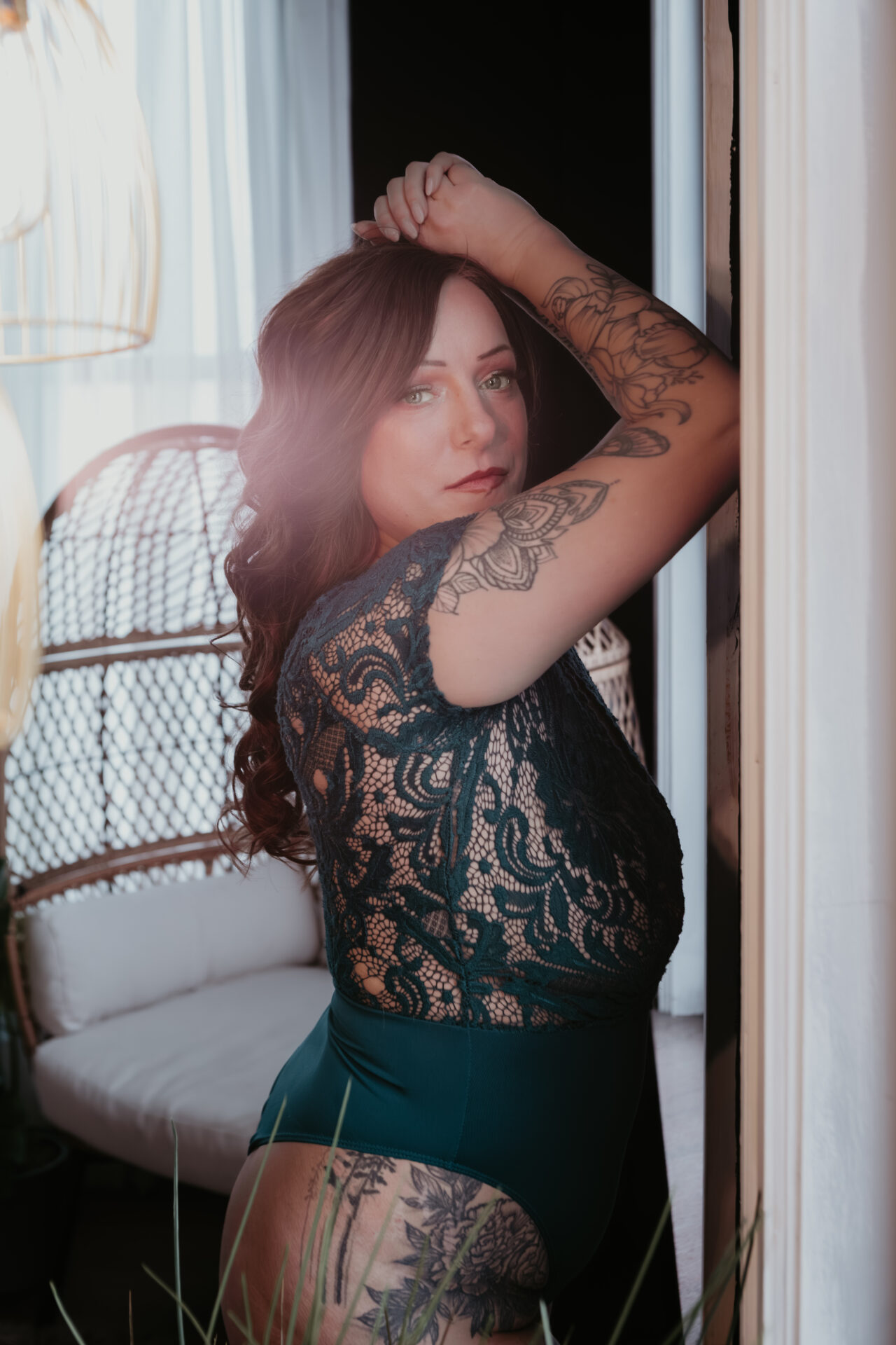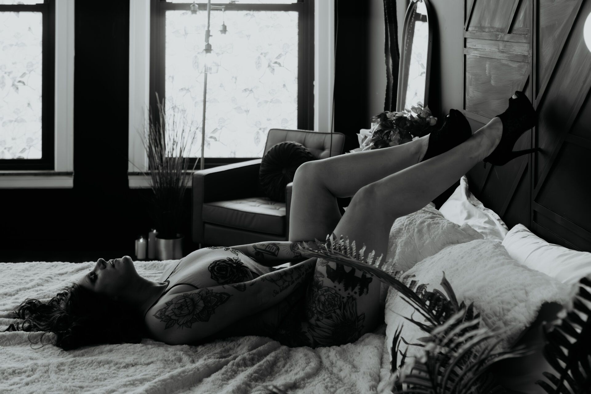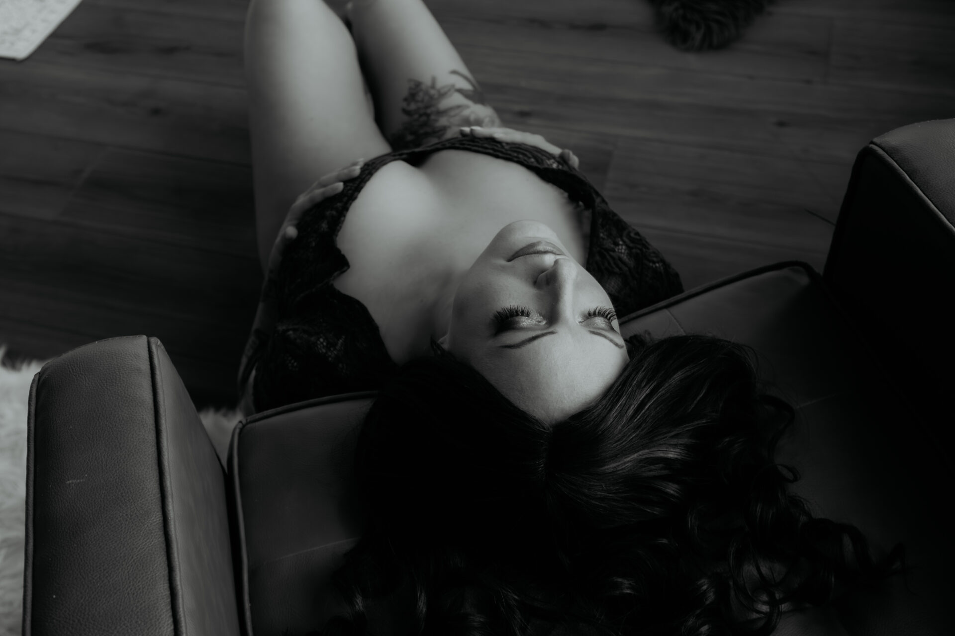 This boudoir gallery is rooted in honesty, softness, and embodied confidence. Photographed in natural light inside my Bay City Michigan studio, this session focuses on real curves, lived in skin, and quiet sensuality without forcing shapes or hiding texture. Every pose is intentional but uncompressed, allowing the body to rest, stretch, and exist as it is. This is boudoir for women who want images that feel intimate, grounded, and deeply personal rather than performative.
